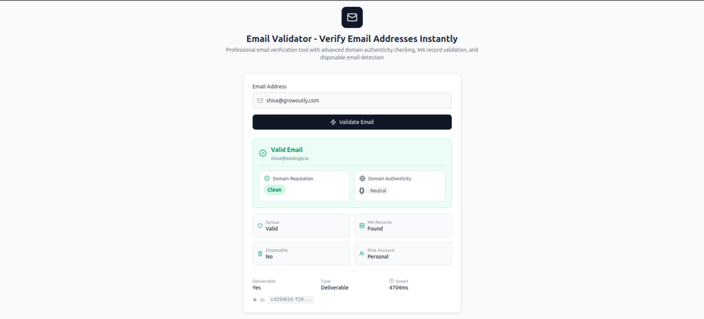 - Format Validation – Ensures the email address is structurally valid
